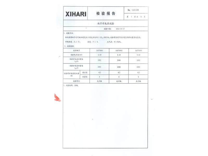 報(bào)告 礦熱爐專用干式自愈式電容器型式試驗(yàn)報(bào)告